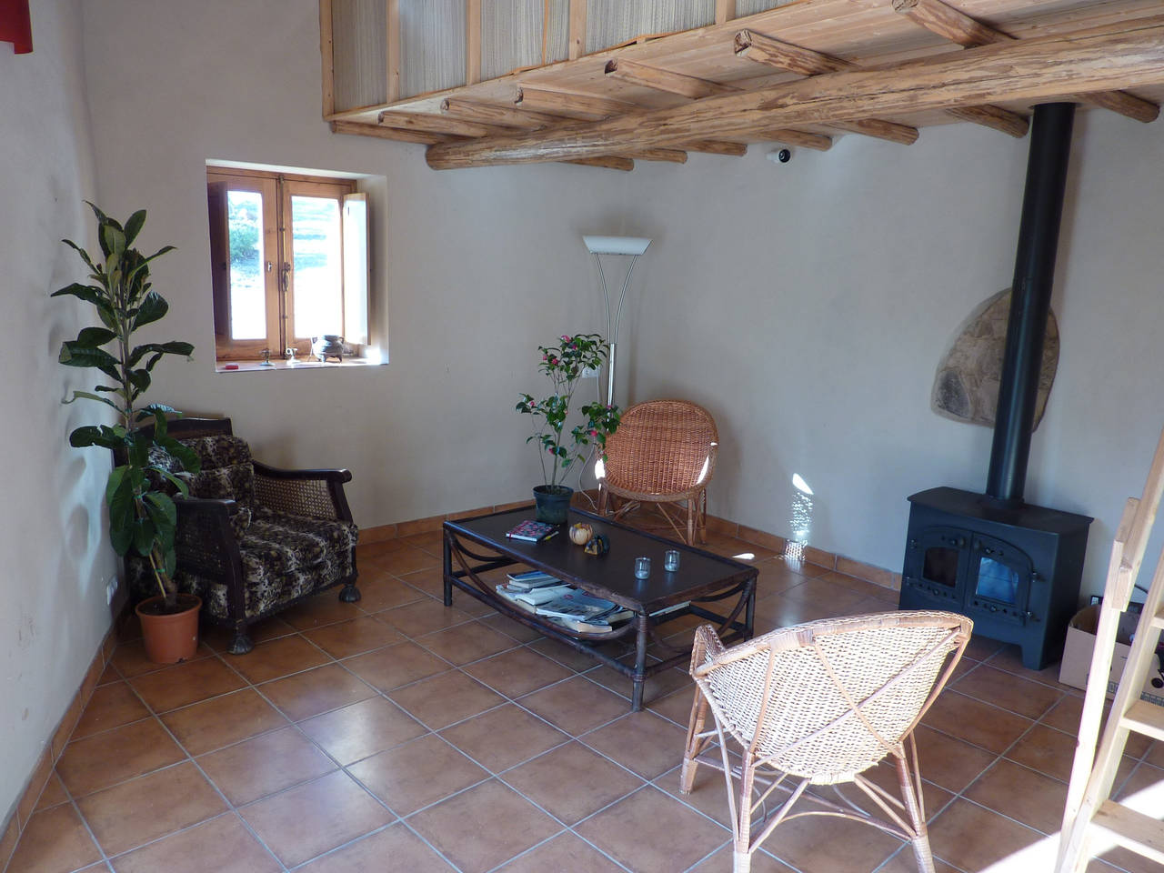 Further down the slope, you'll come across The Cottage, available for rent from April to October. Built using traditional rammed earth techniques, this charming cottage embodies the rustic spirit of the region. Inside, the wooden roof and mezzanine create a warm, inviting atmosphere, perfect for a relaxing holiday. The simple yet functional layout makes it an ideal base for your stay.
